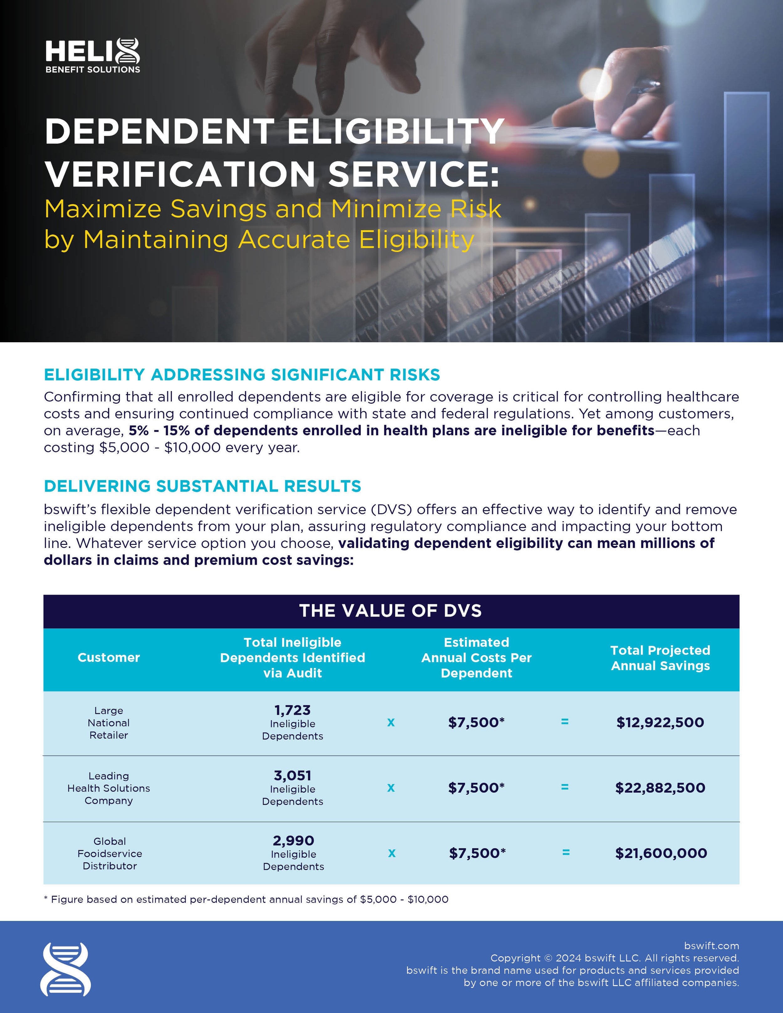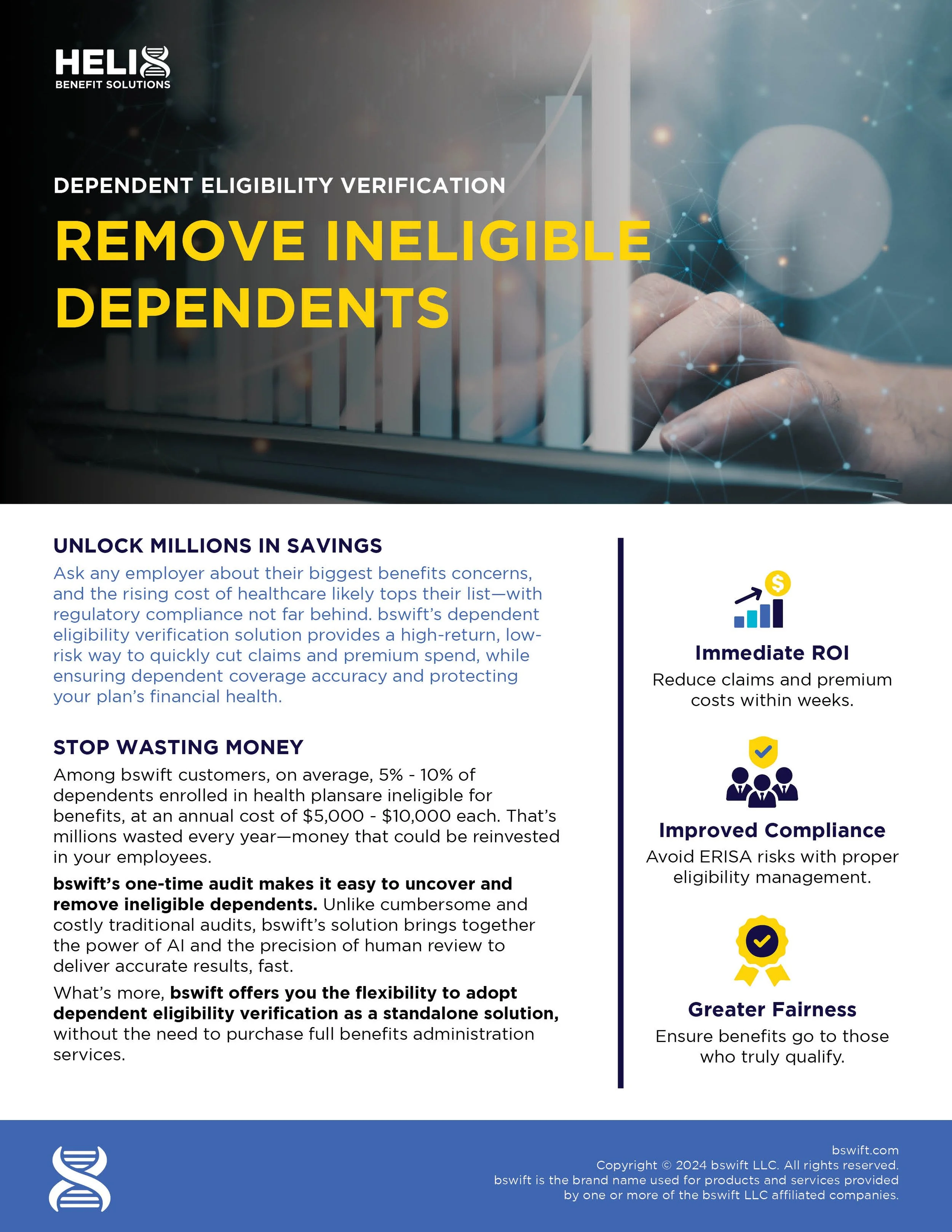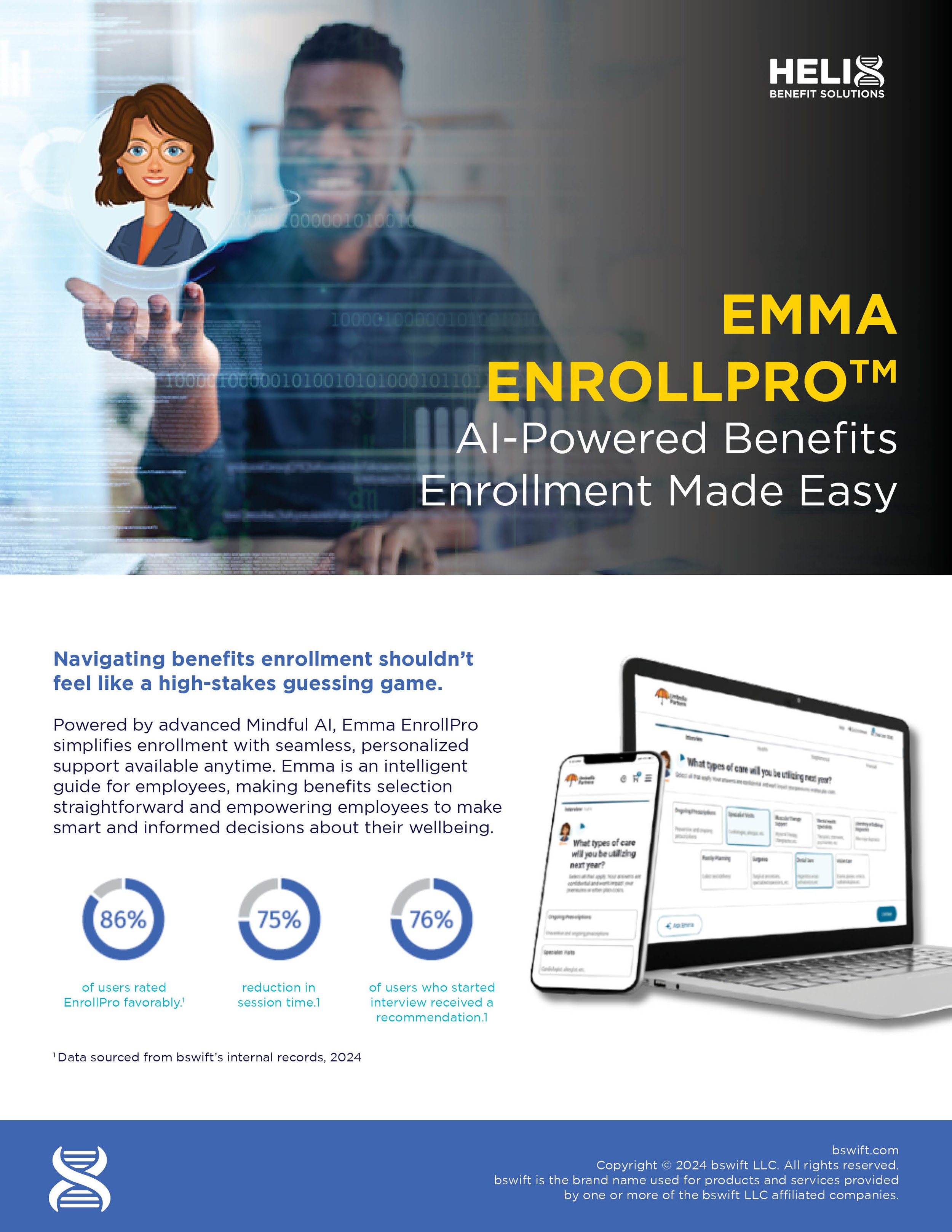 bswift Resources bswift®ACA Management Suite Download Flyer bswift®BPS Carrier Payments Reconciliation Download Flyer bswift®Dependent Eligibility Verification (DEV) Download Flyer bswift®Dependent Verification Download Flyer bswift®Emma Chat Download Flyer bswift®Emma Enroll pro Download Flyer bswift®Emma Voluntary Benefits Download Flyer bswift®Experience Platform Download Flyer bswift®Flyer Download Flyer bswift®Mobile One-Pager Download Flyer bswift®Overview One-Pager Download Flyer Employee Navigator Resources Employee NavigatorEnd-to-End Benefits Administration Download Flyer Employee NavigatorFlyer Download Flyer Employee NavigatorOnboarding Download Flyer HelixOne Resources HelixOne Download Flyer Spending & Reimbursement Accounts Resources CDH & COBRA Flyer Download Flyer HRA Flyer Download Flyer Dependent Care Flyer Download Flyer HSA Flyer Download Flyer Lifestyle Flyer Download Flyer FSA Flyer Download Flyer Transit & Parking Flyer Download Flyer Fast Claim Reimbursements Download Flyer CDH Tax Savings Download Flyer Reimbursement Claims Process HELIX Trends e-book Download Flyer Faster HSA, FSA, HRA Claims Watch the Video Powered Claims Adjudication Watch the Video Eligible Product Discounts FSA Shop Download Coupon HSA Shop Download Coupon